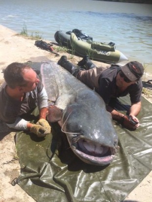 Un francés pesca un siluro de 2,64 metros en aguas del Segre en Mequinenza