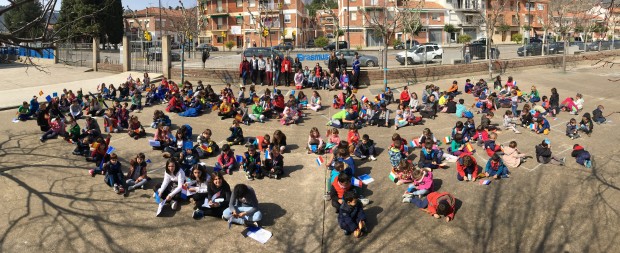 El acto, que comenzó en el salón multiusos del centro, acabó en el patio de recreo donde se presentó el logotipo acordado en una reunión celebrada en Bressuire en la que participaron profesores de los tres centros, se procedió al izado de la bandera europea mientras sonaba el himno de la Unión Europea y se realizó un “mural humano” en el que los alumnos del centro formaron la frase “Stronger together”, juntos más fuertes, lema del proyecto.